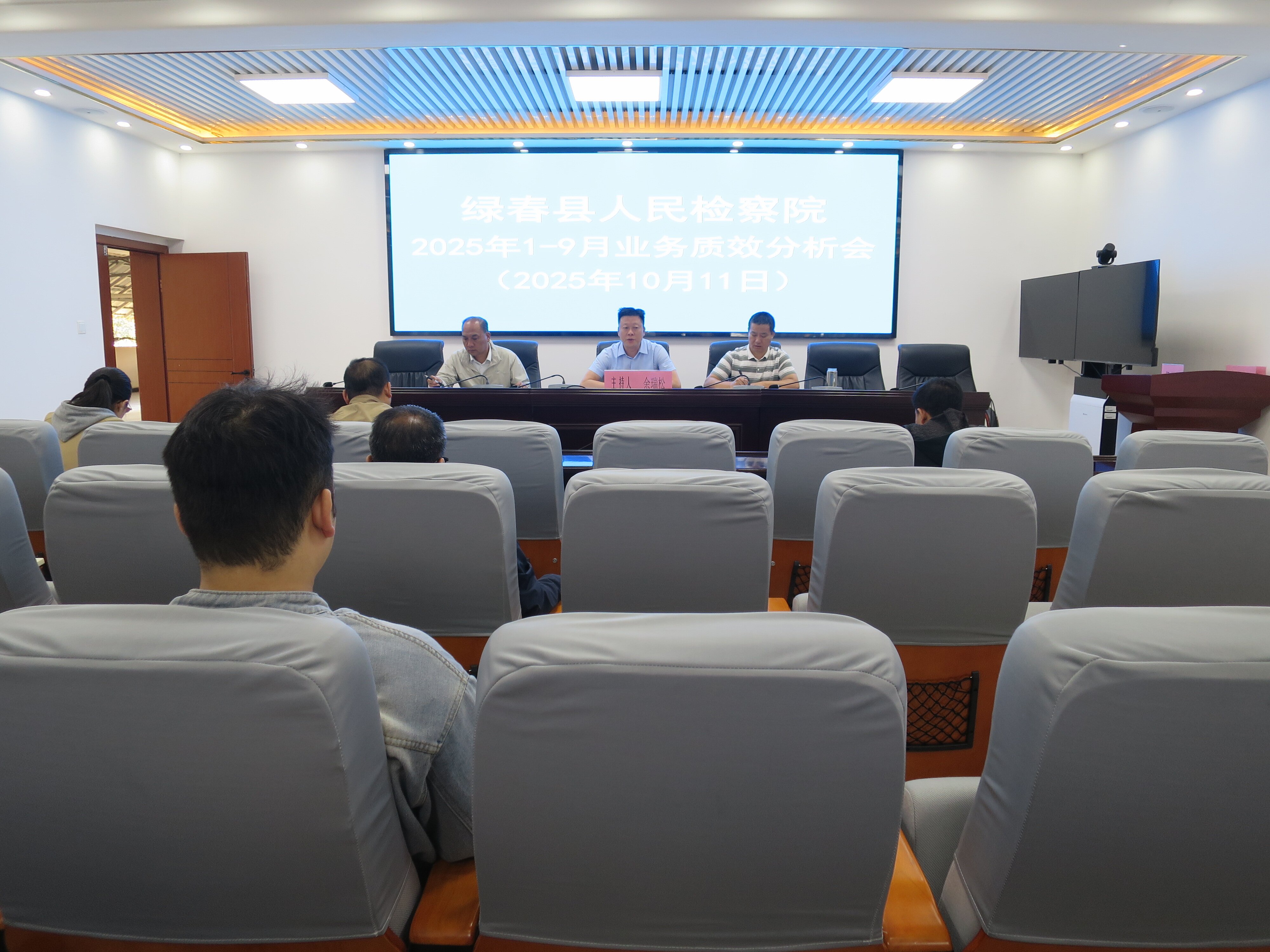 为进一步提升办案质效、高标准完成年度目标任务,10月11日,绿春县人民检察院召开2025年1-9月业务质效分析会。会议由党组书记、检察长余瑞松主持,院领导班子成员、专检委、各业务部门全体干警参加会议。